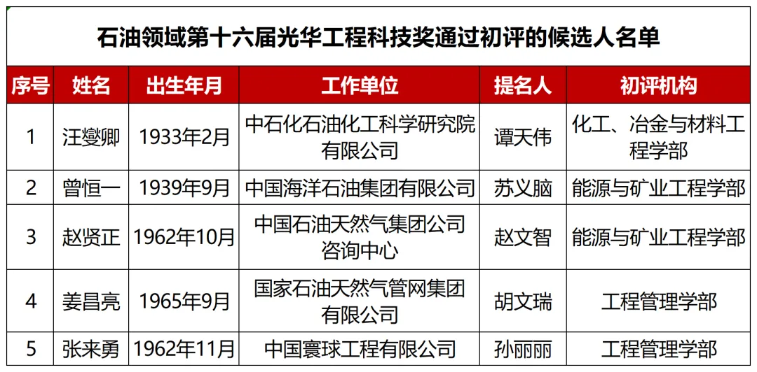 五人入选中国工程院光华工程科技奖初评!